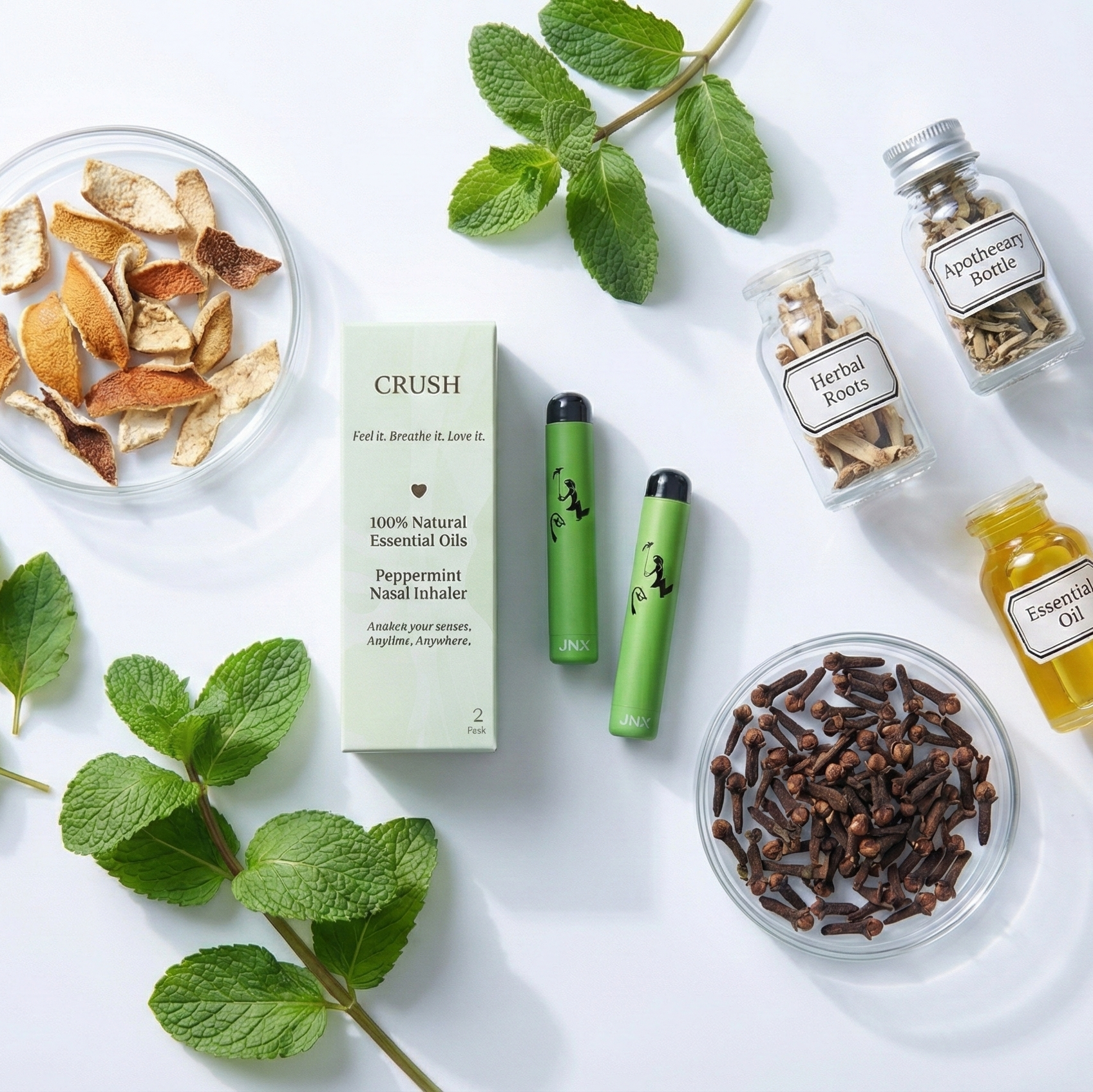 Unlike basic menthol sticks, our signature formula is a complex symphony of 12 premium botanicals. We blend invigorating essential oils with rare herbal extracts—crafted not just to wake you up, but to keep you alert, focused, and emotionally balanced. Anytime, anywhere.