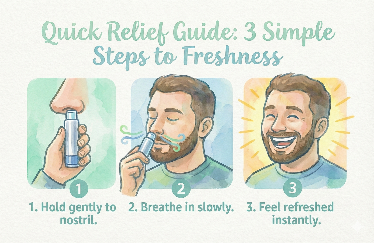 - Position: Hold the inhaler just below your nostril. (No need to insert).